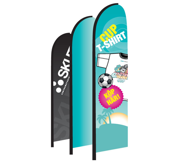 Beachflaggor är något som har blivit väldigt populärt på senare år. Från att ha börjat som flaggor på stranden, till att ses i alla olika sorters miljöer som i skidbacken eller i och utanför butik. Beachflaggan fungerar både för inomhus och utomhusbruk och skapas i slitstarkt tyg för att klara olika sorters påfrestningar som tex väder och vind.